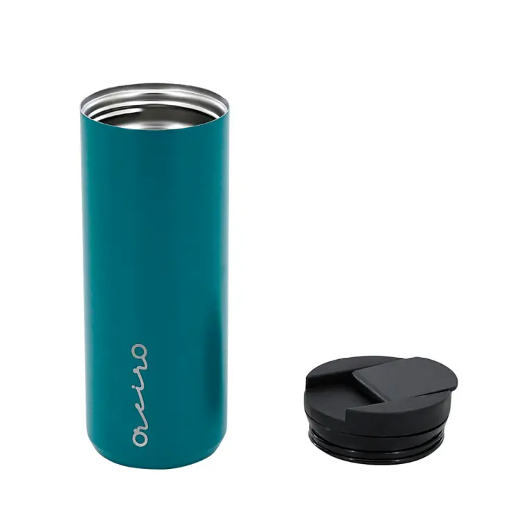 Composición: Botella metálica de acero inoxidable doble capa (capa interna 100% AISI 304 y capa externa 100% AISI 201). Tapa de polipropileno (PP) 100% con sello de silicona 100%.