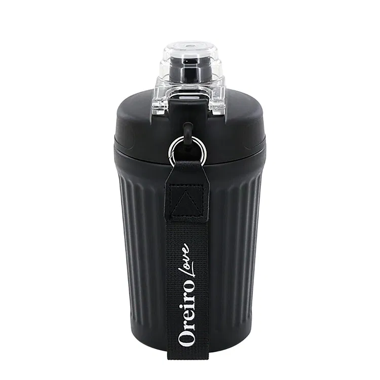 Composición: Vaso metálico de acero inoxidable doble capa (capa interna 100% AISI 304 y capa externa 100% AISI 201). Tapa de acrilo-butadieno-estireno (ABS) 100% con sello de silicona. Pulsador de acrilo-butadieno-estireno (ABS) 100%, agarradera de poliéster 100%.