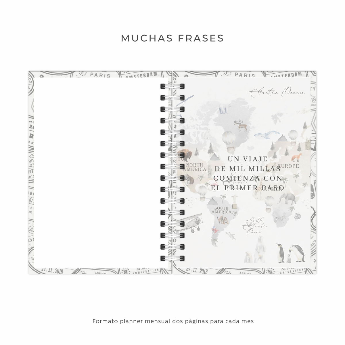 ✍️ Bitácora de viaje con hojas lisas y frases que inspiran