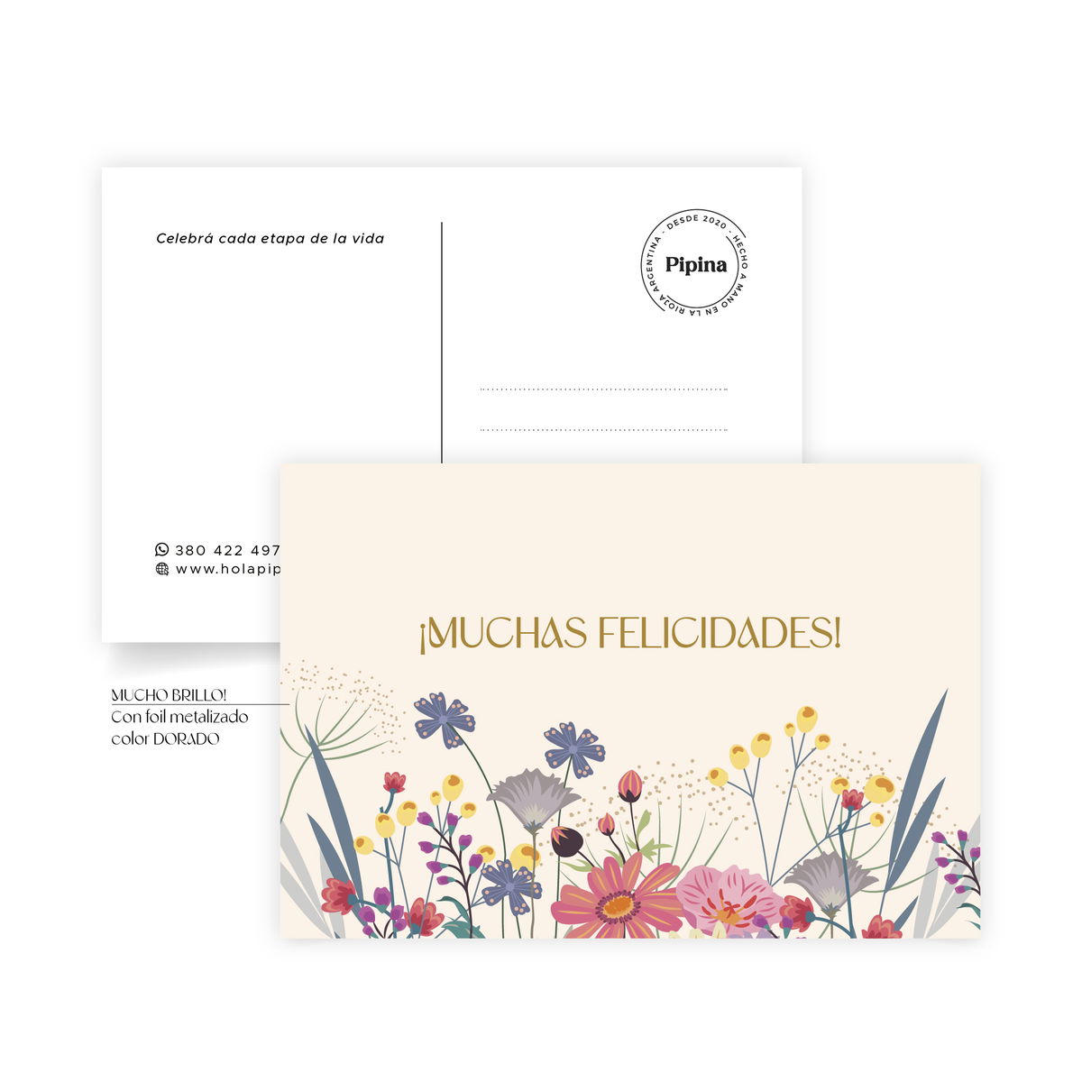 🌟 Terminación: laminado mate + detalles en foil metalizado