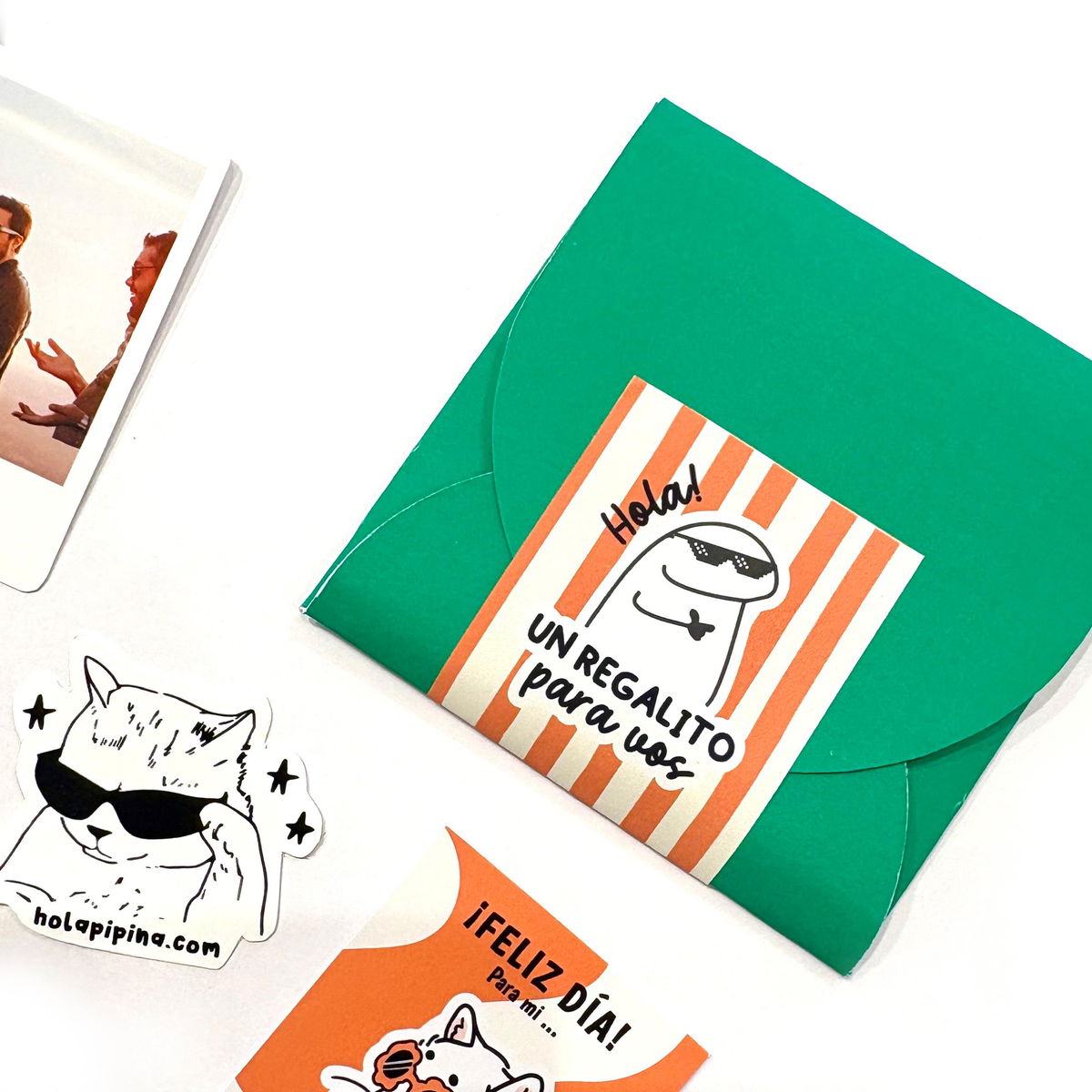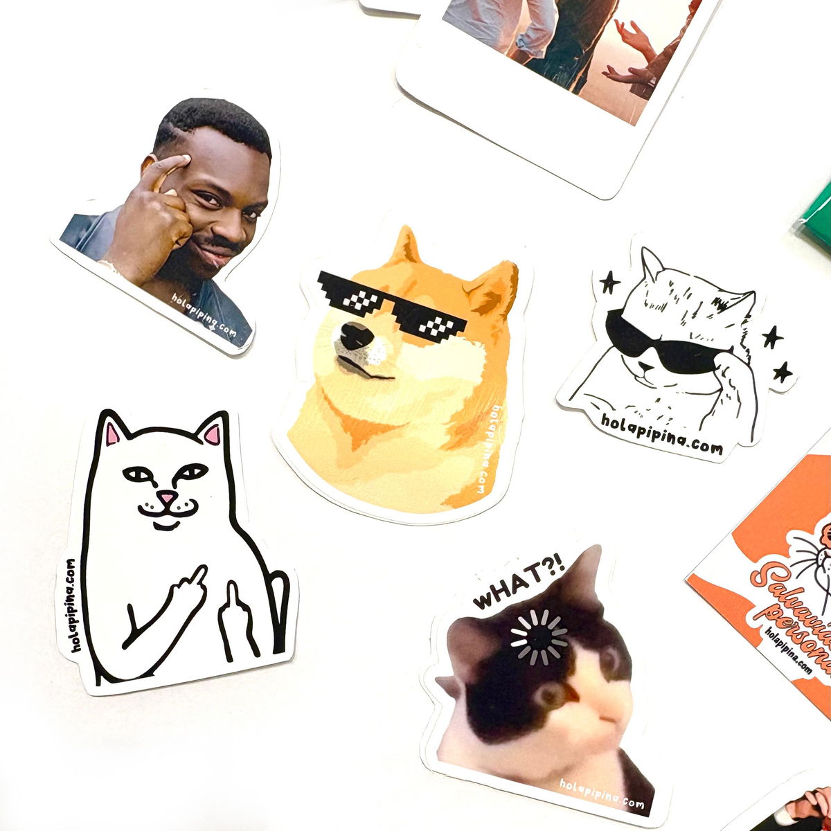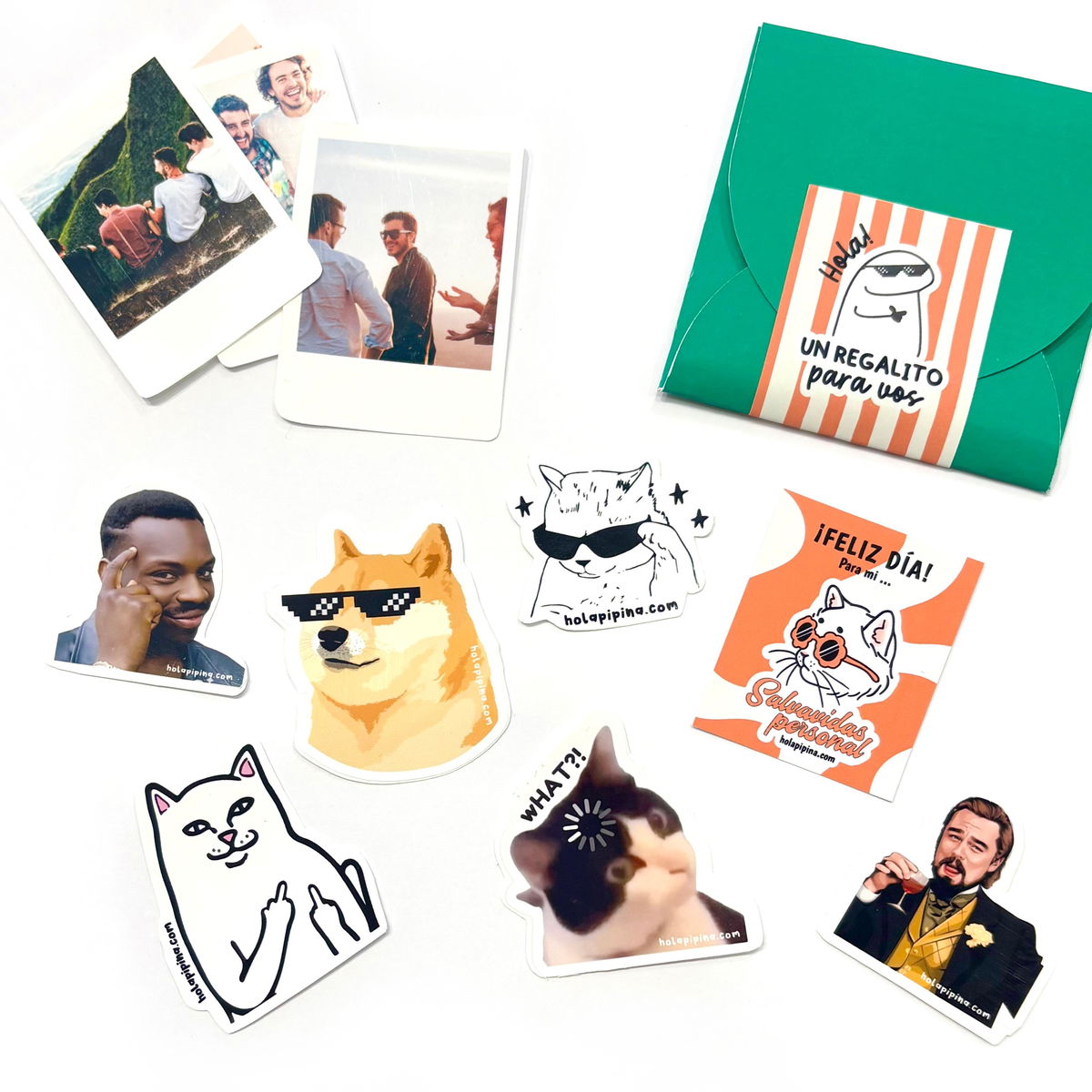 - 14 stickers adhesivos con frases y memes (7 para vos y 7 para regalar)