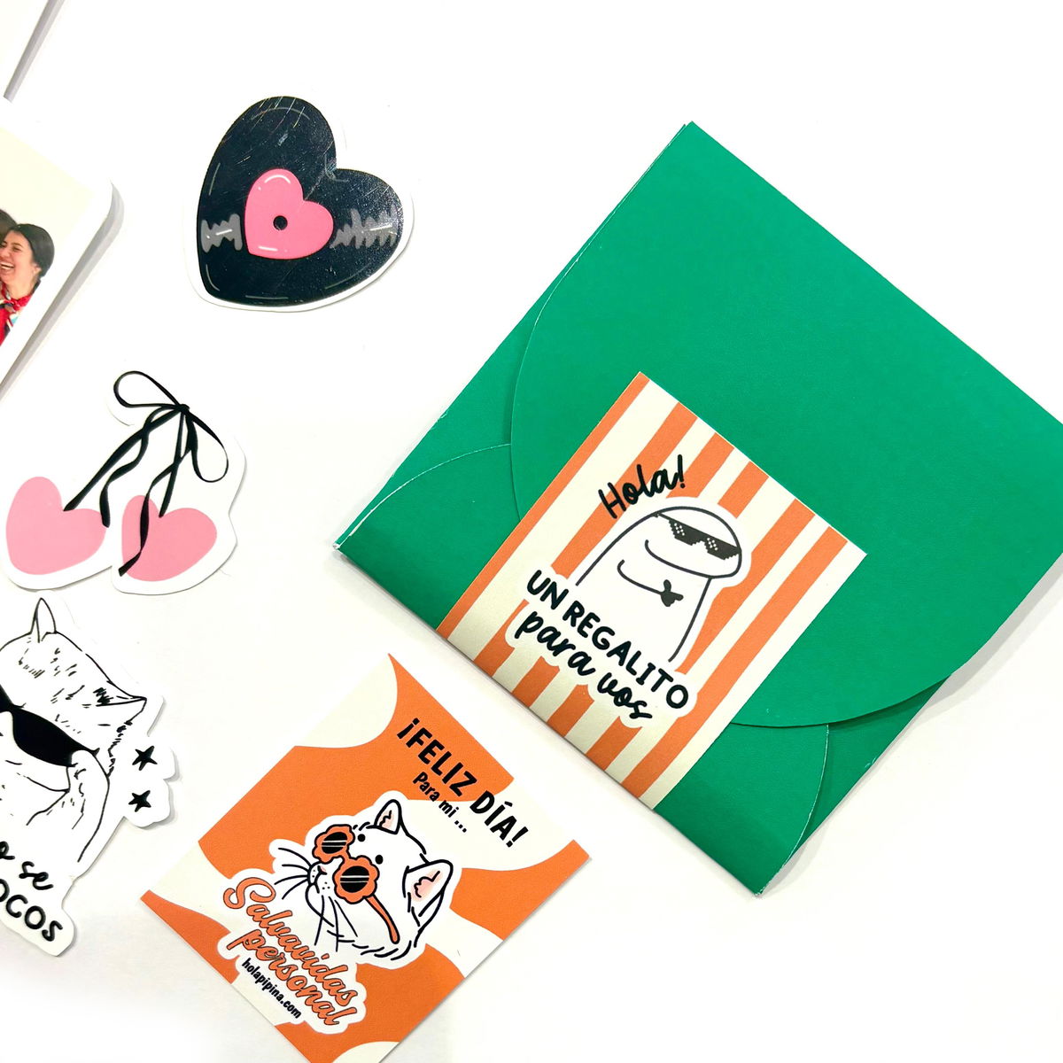 Incluye dos sets de stickers personalizados: uno para vos y otro para ese amigo o amiga que vale oro.