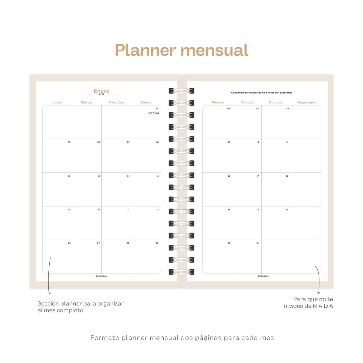 Cada detalle está diseñado para que planificar tu año sea simple, inspirador y lleno de color 🌿