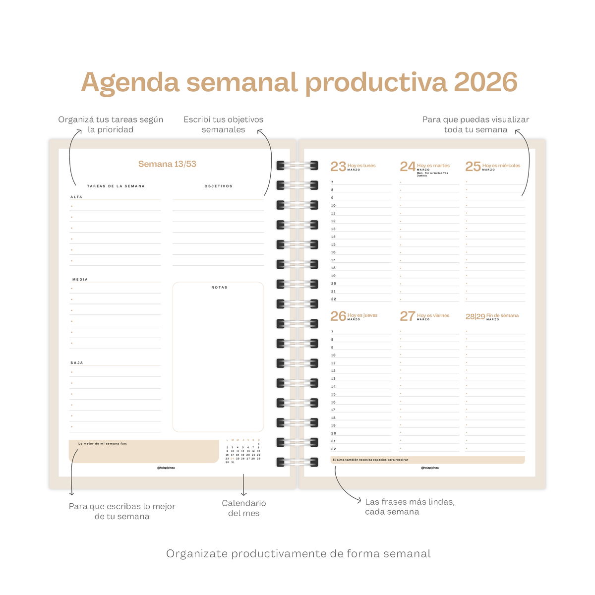 • Agenda Semanal Productiva: con enfoque en metas, prioridades y balance.