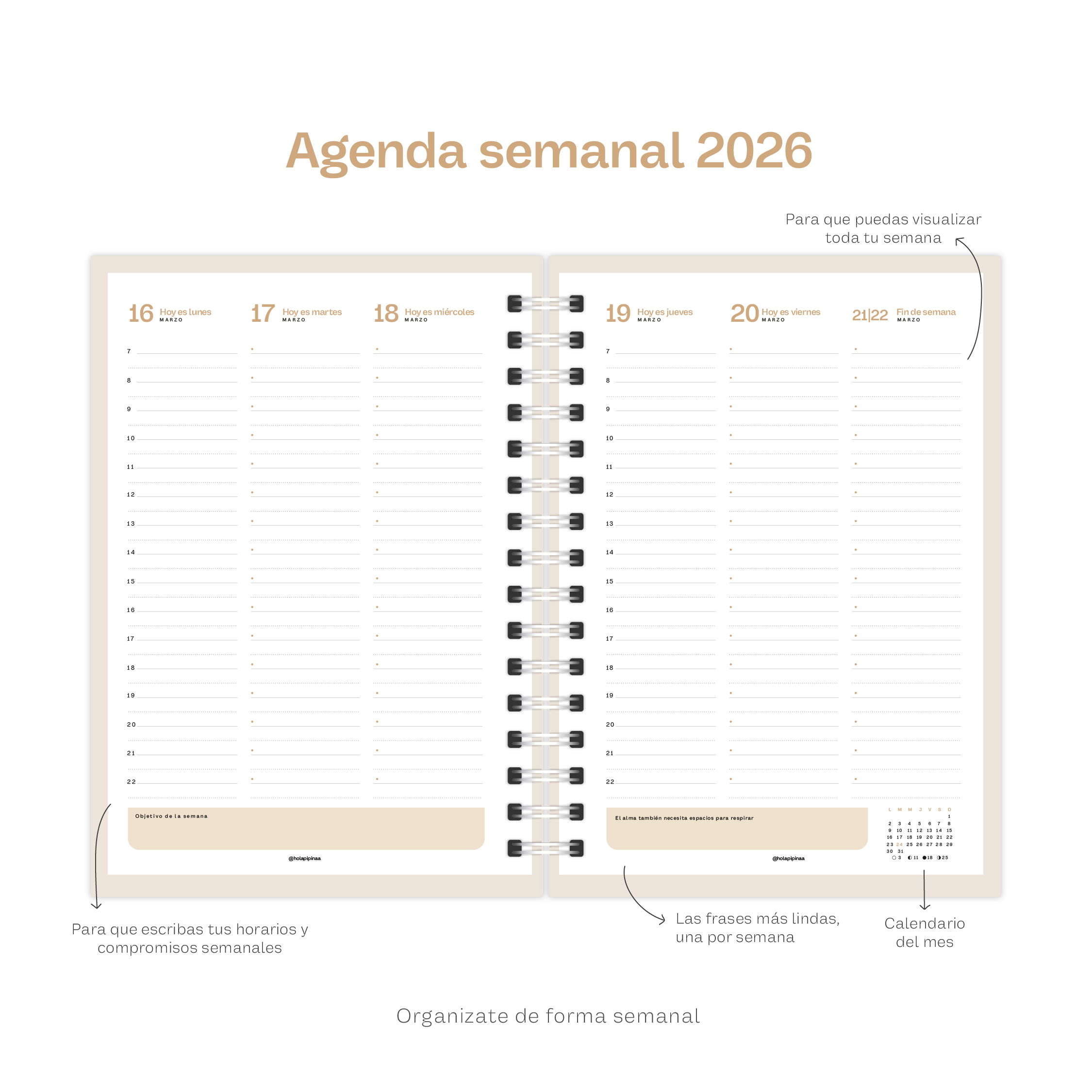 • Agenda Semanal Productiva: con enfoque en metas, prioridades y balance.