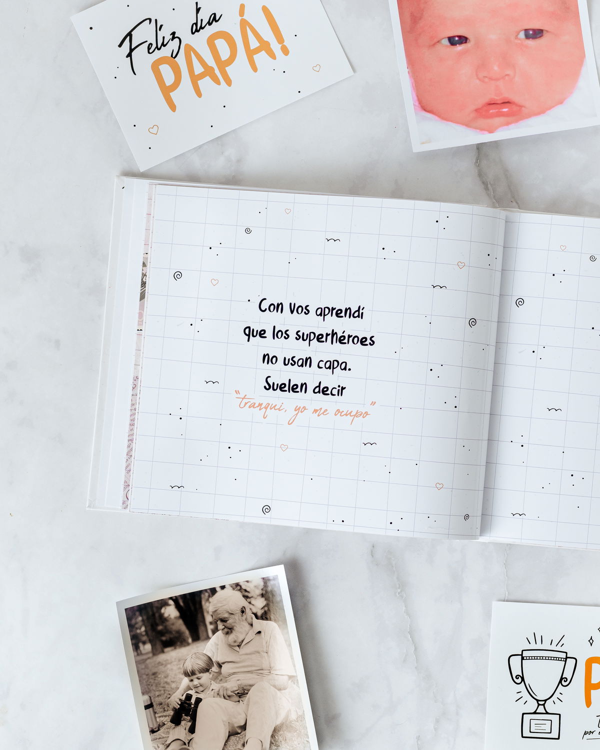 Este álbum no es solo un lugar para pegar fotos. Es un recorrido visual por todo lo vivido con él. Un homenaje en imágenes a ese papá que estuvo, que cuidó, que jugó y enseñó.