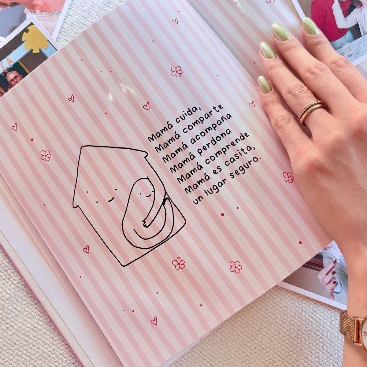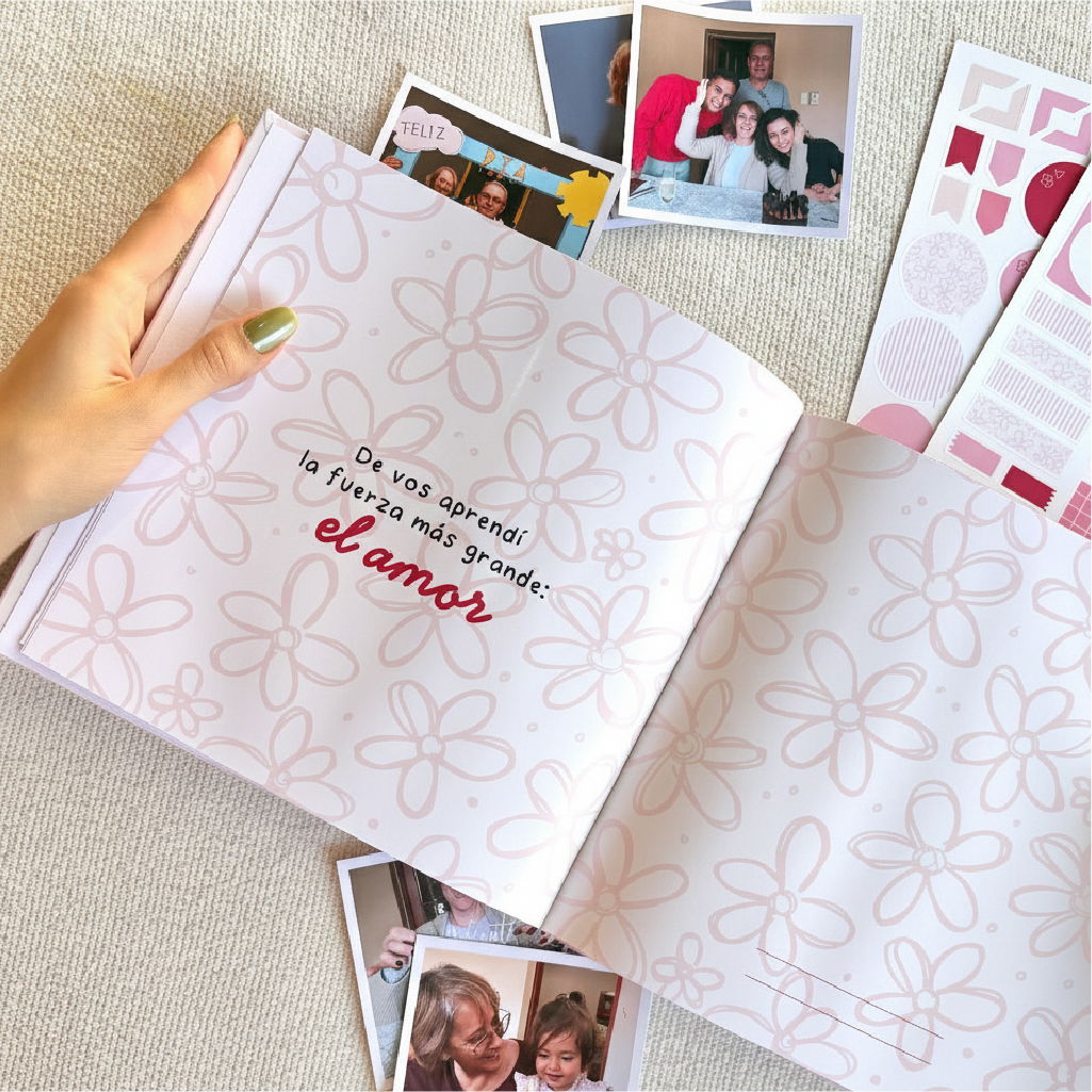 Este álbum no es solo un lugar para pegar fotos. Es un recorrido visual por todo lo vivido con ella. Un homenaje en imágenes a ese mamá que ama, cuida, protege y acompaña siempre.